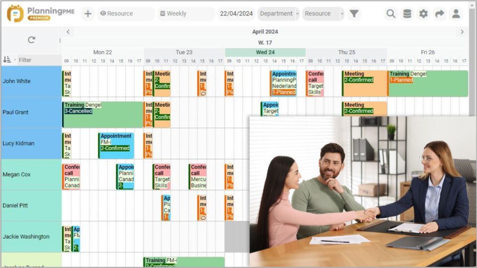 - Utilizar uma ferramenta de planeamento online : Poupe tempo e reduza o stress utilizando um software de planeamento como o PlanningPME para ter uma visão clara da disponibilidade dos funcionários e enviar emails personalizáveis automáticos nas fases relevantes.
